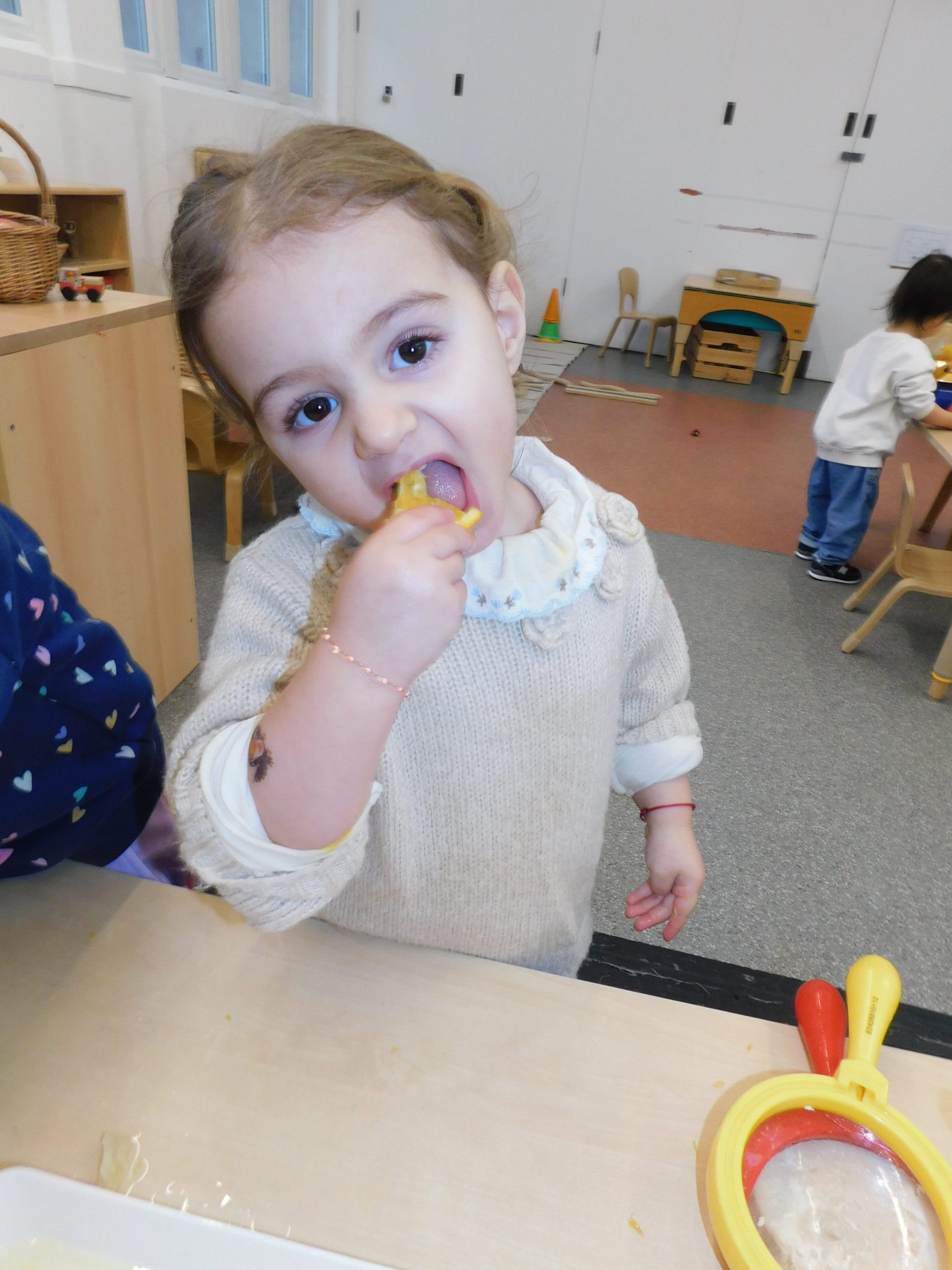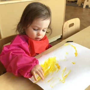 Children are natural artists, and in our classrooms, they have the freedom to explore their creativity through open-ended art experiences. With access to paints, clay, crayons, markers, and natural materials, they experiment with color, shape, texture, and form, developing fine motor skills and self-expression. Through hands-on exploration, they gain an understanding of symmetry, composition, and spatial awareness, all while building confidence and problem-solving abilities.